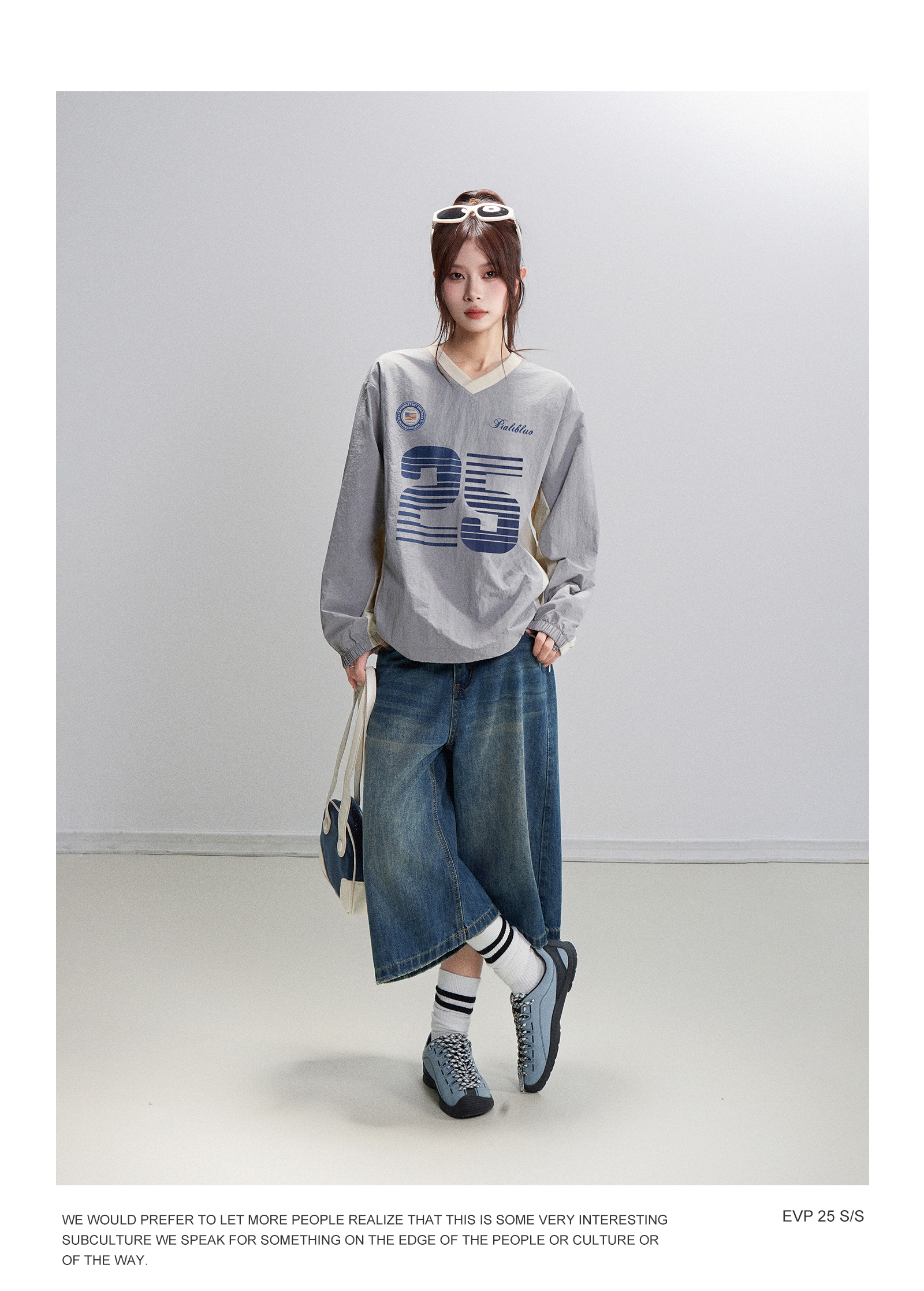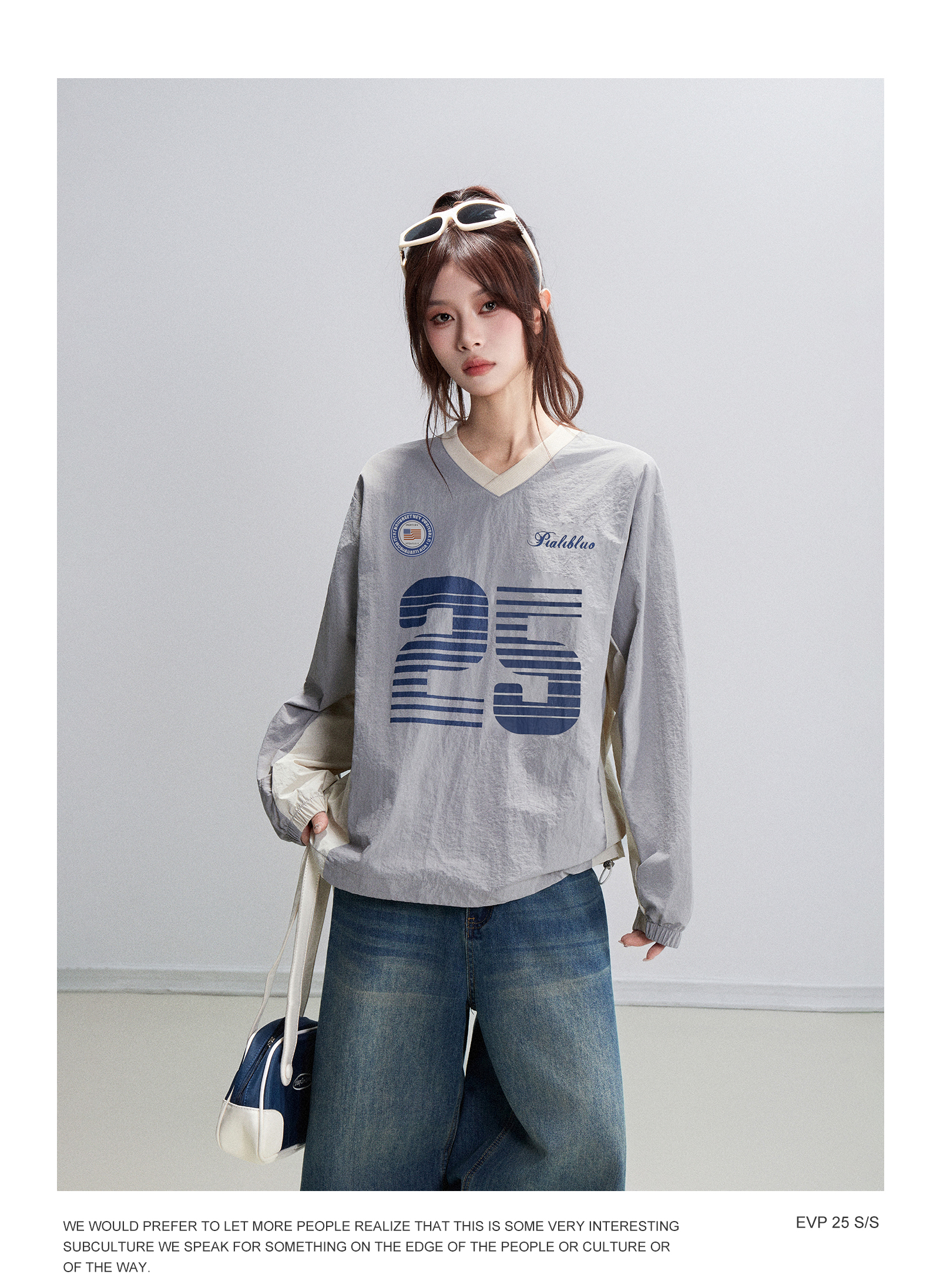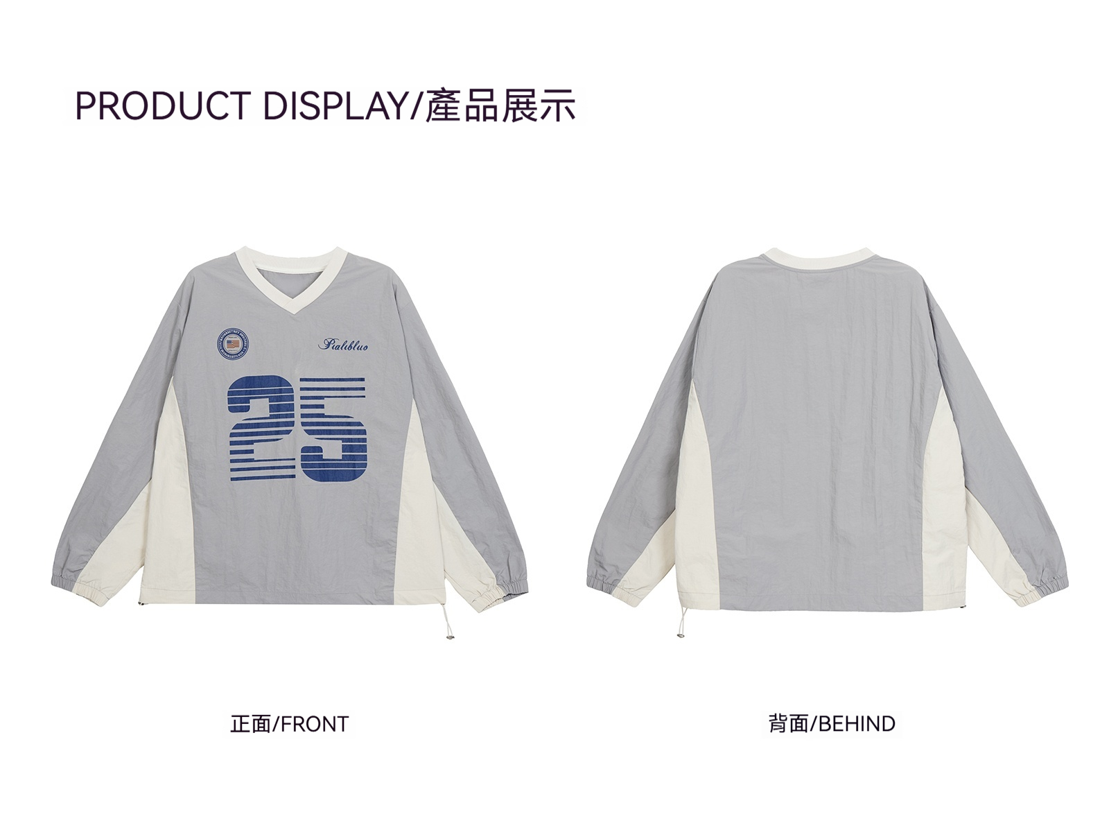 美式復古灰色v領正肩套頭長袖衛衣女秋季寬鬆運動設計感小眾上衣