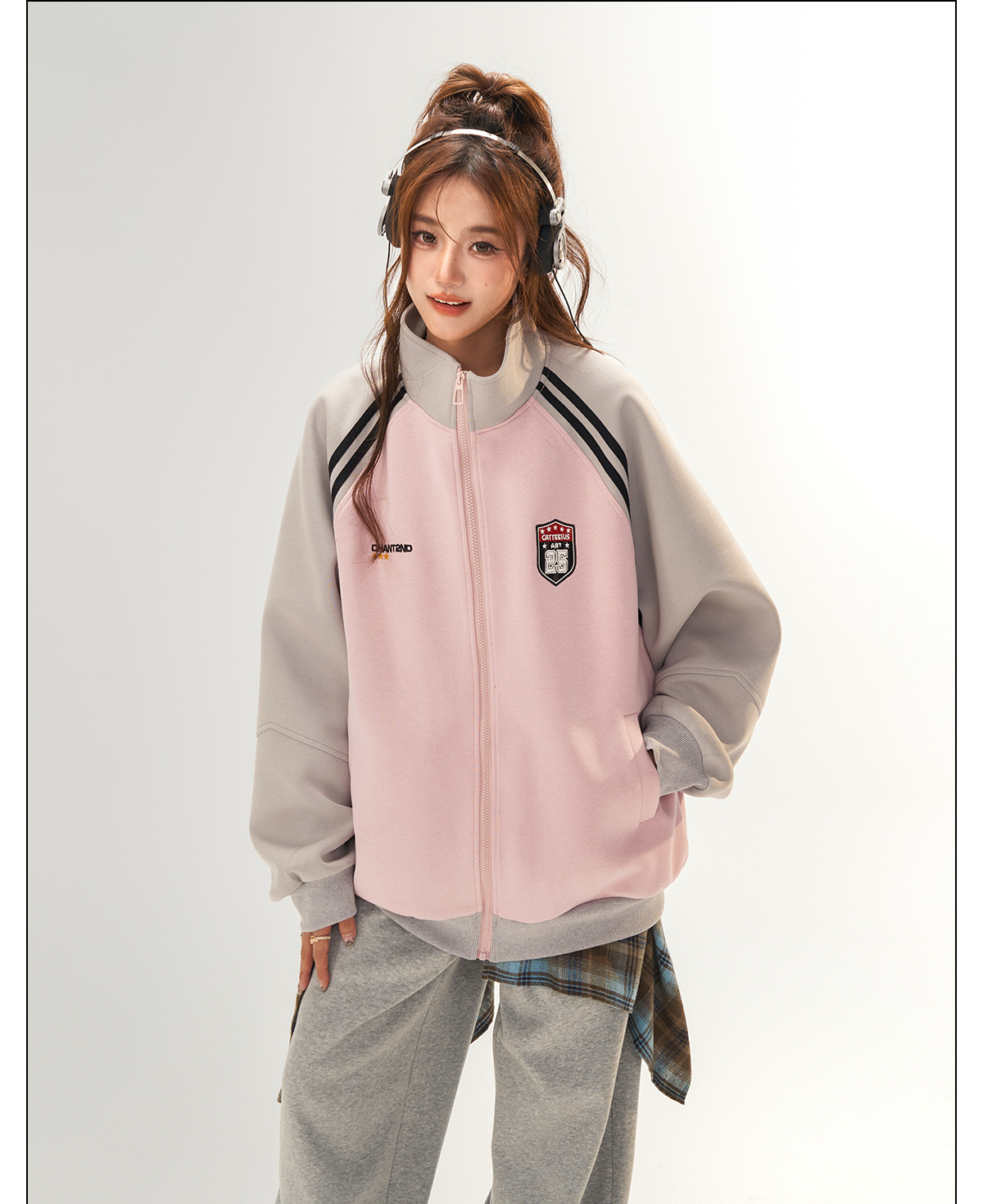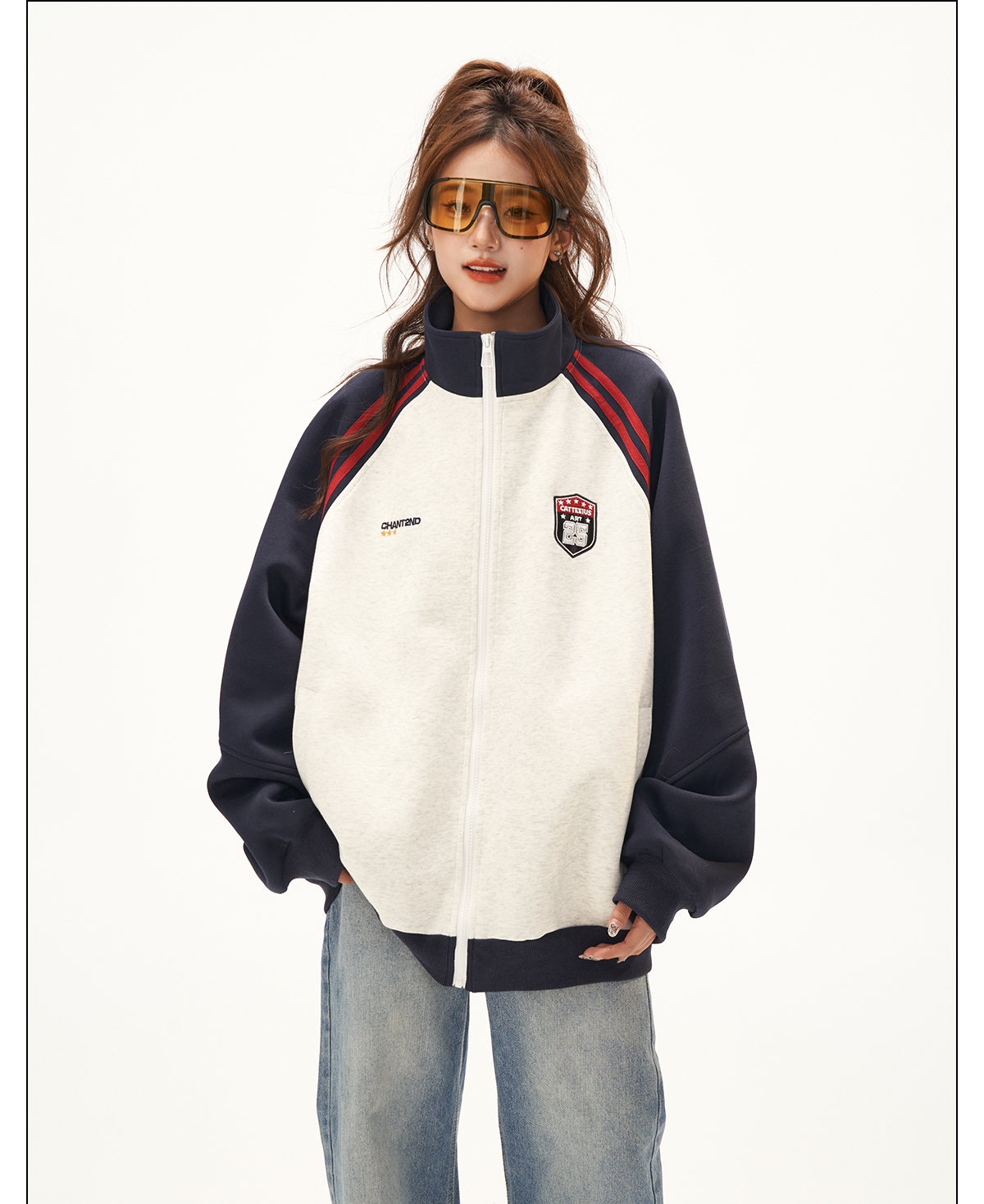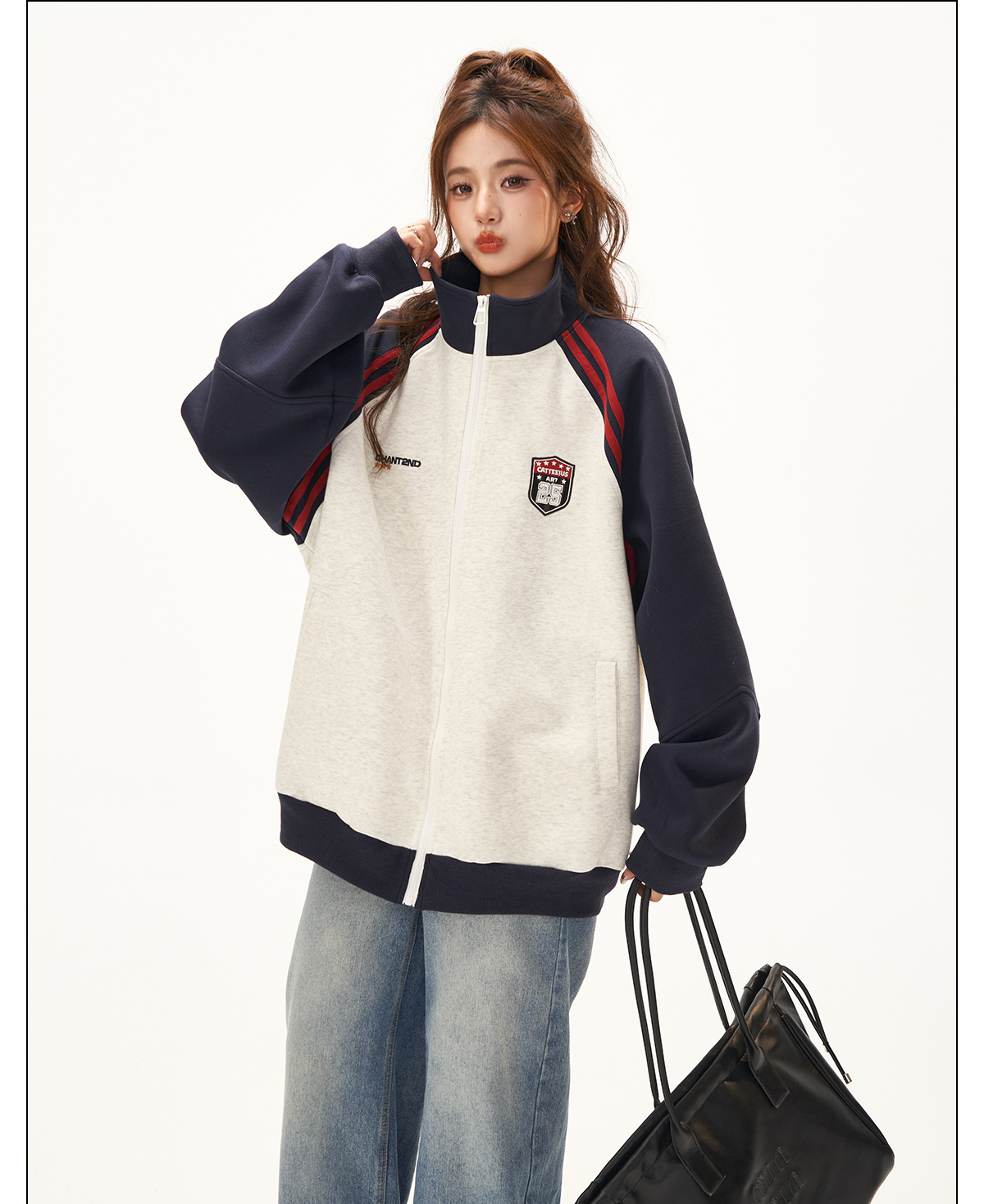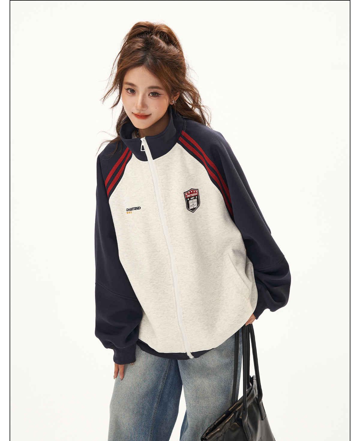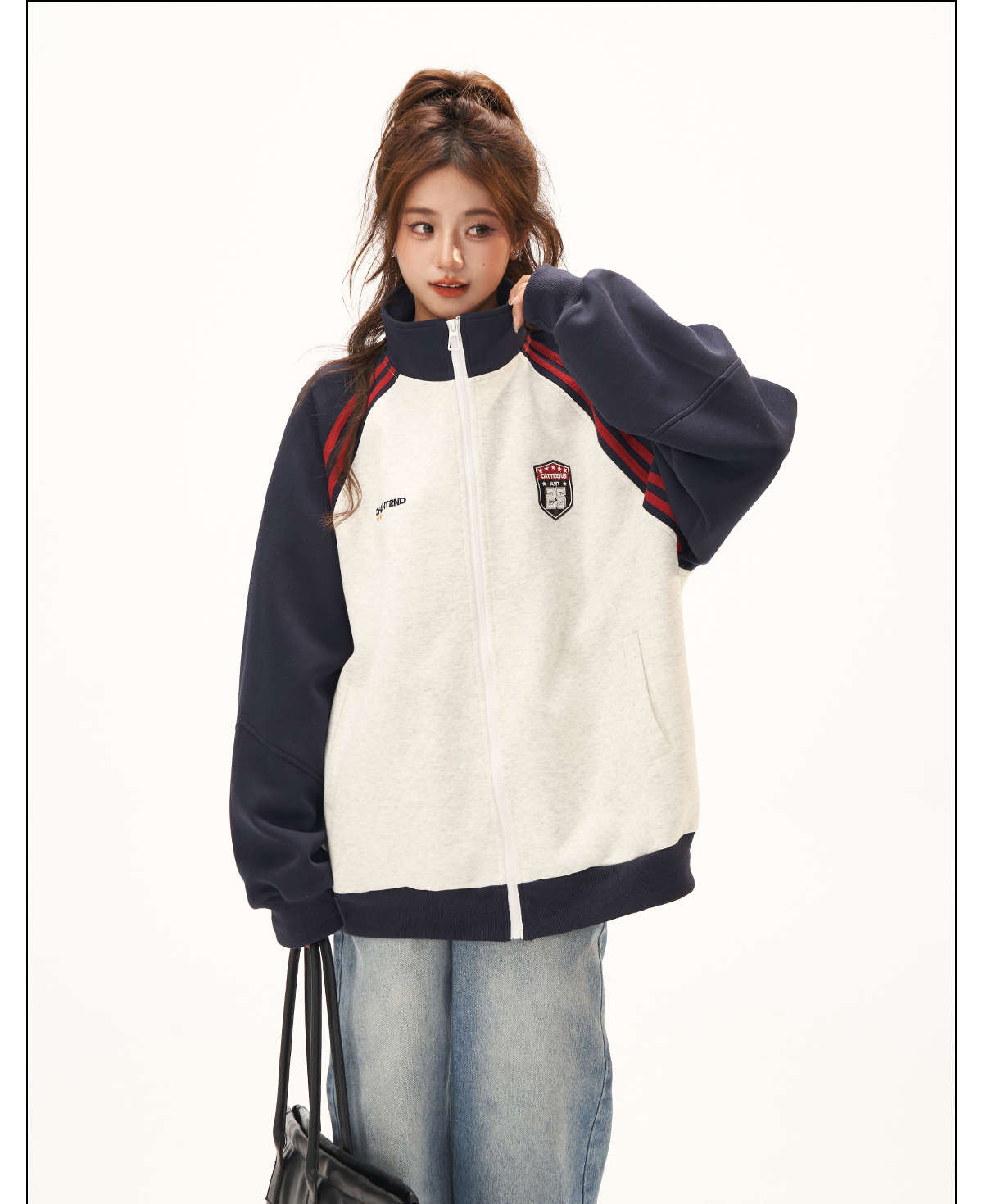 美式復古衛衣外套女秋冬季高級感拼接插肩袖衛衣開衫