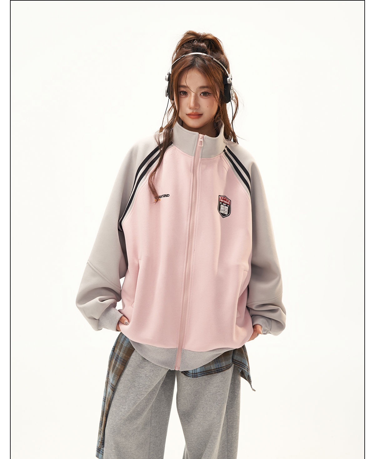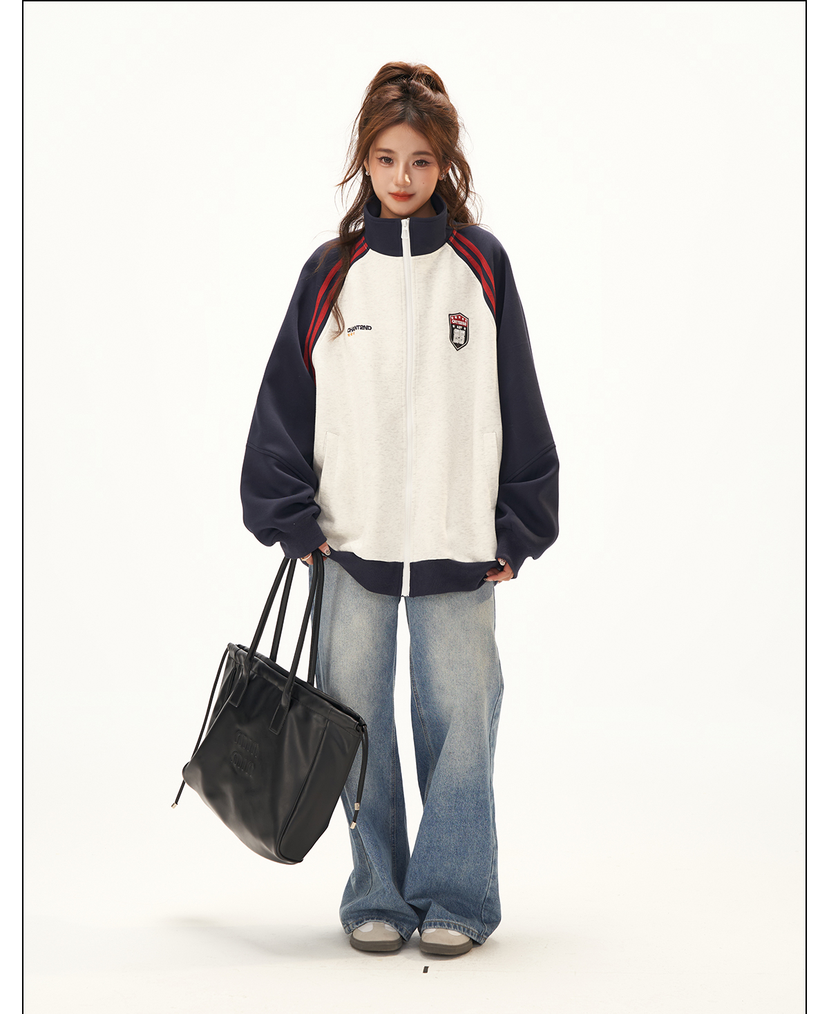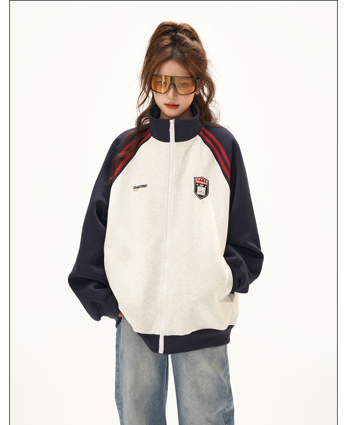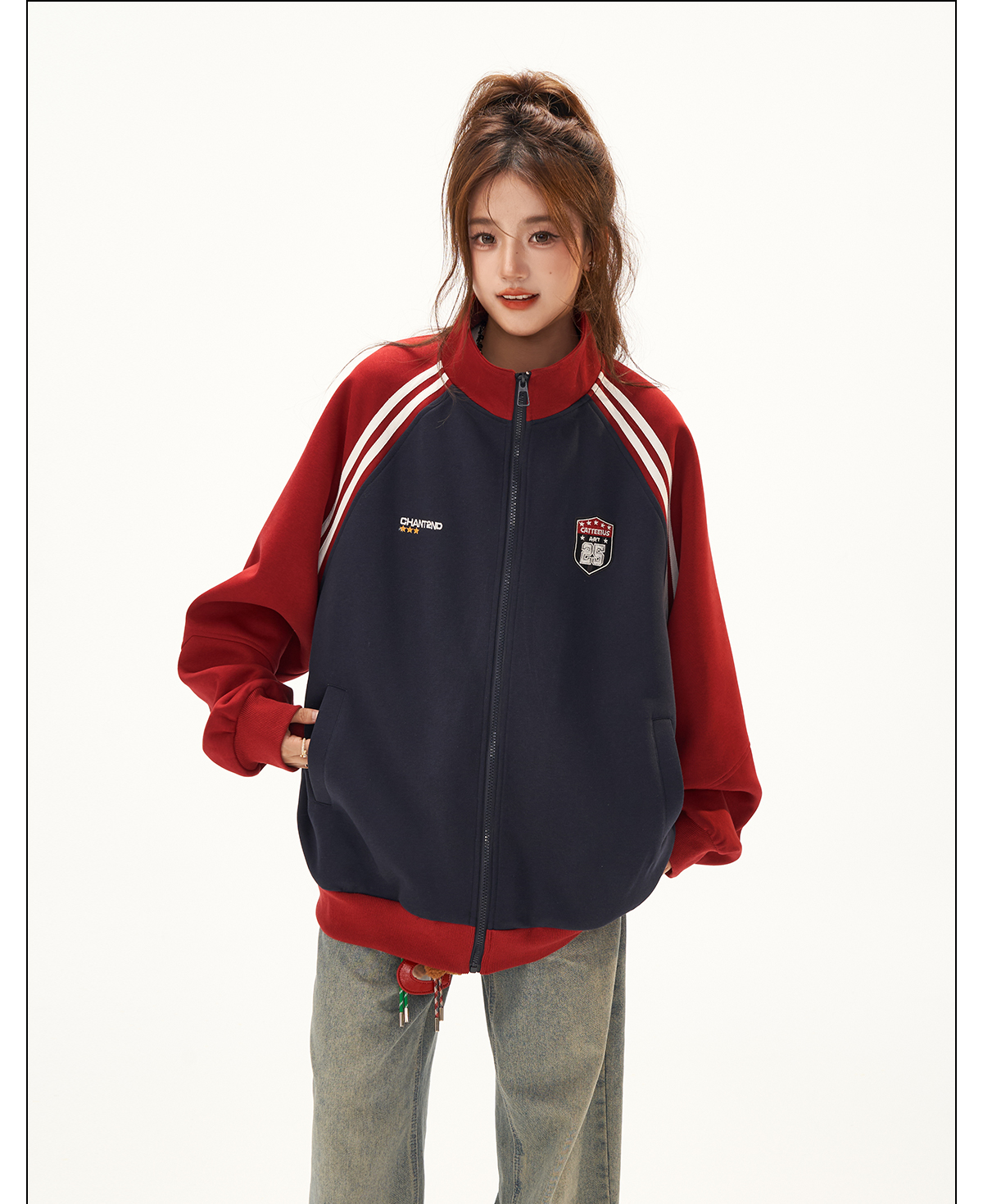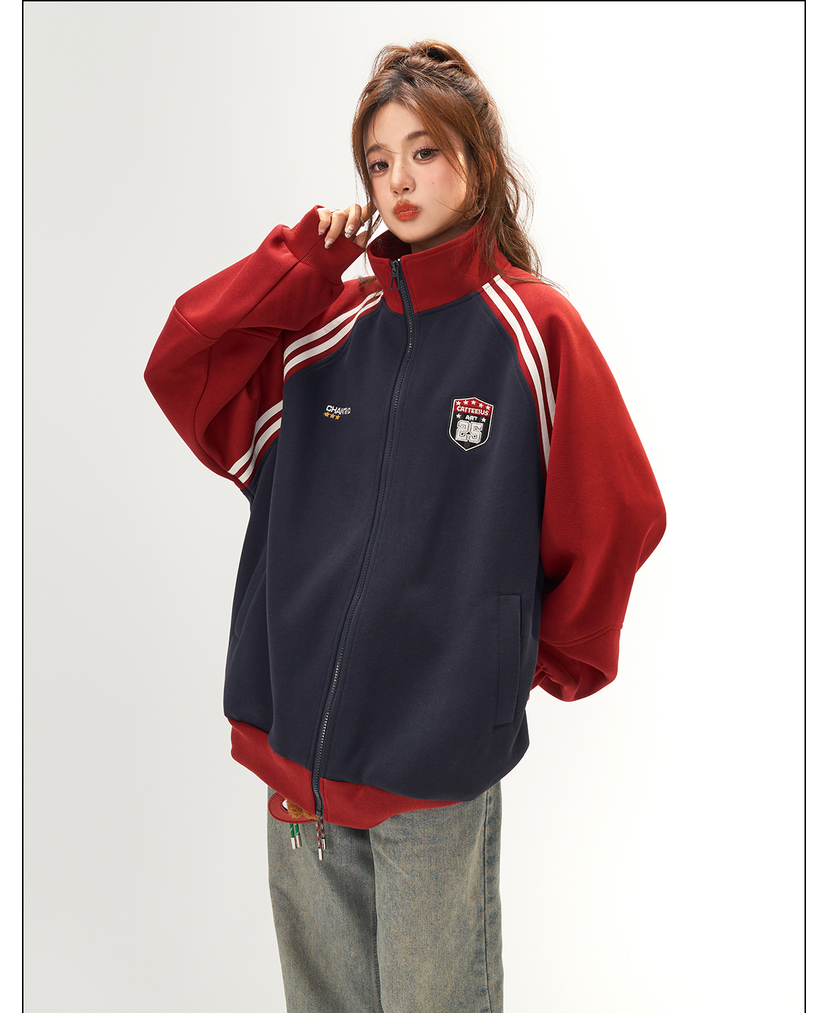 美式復古衛衣外套女秋冬季高級感拼接插肩袖衛衣開衫