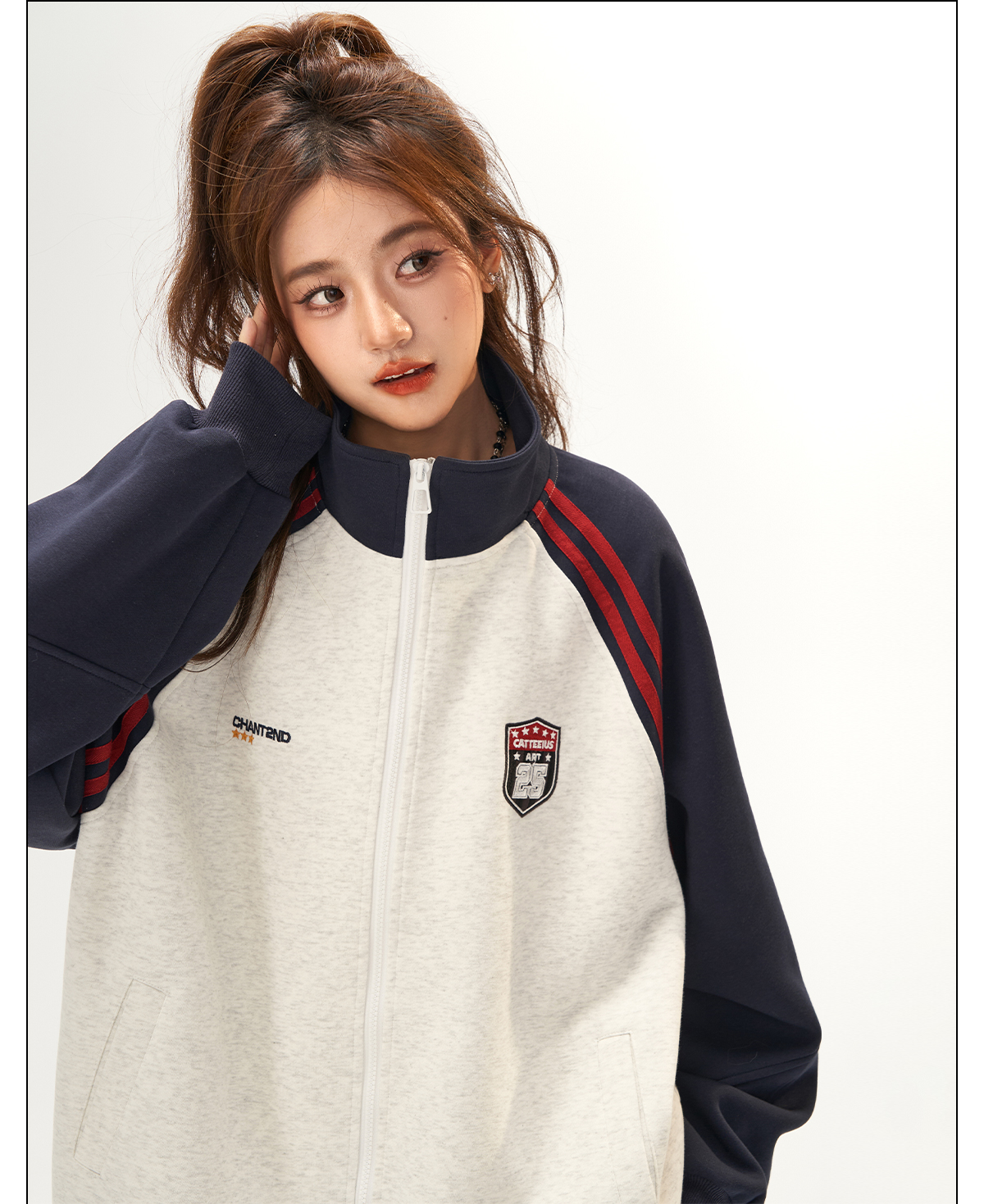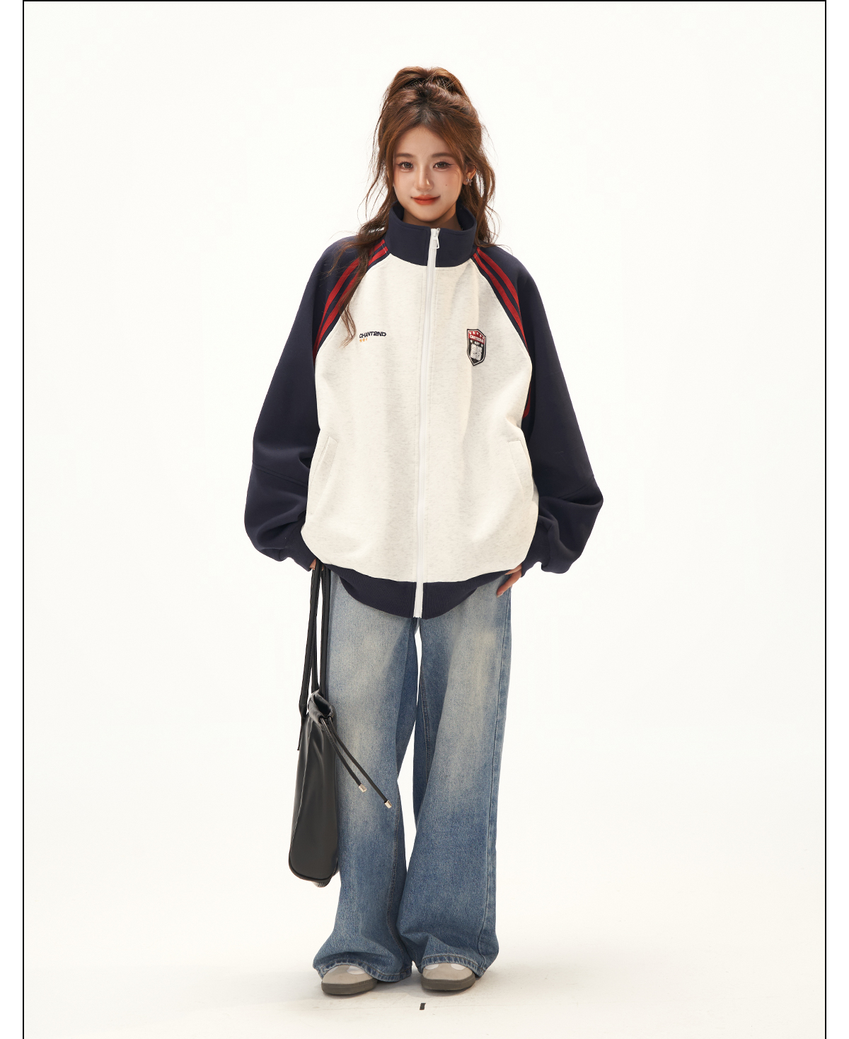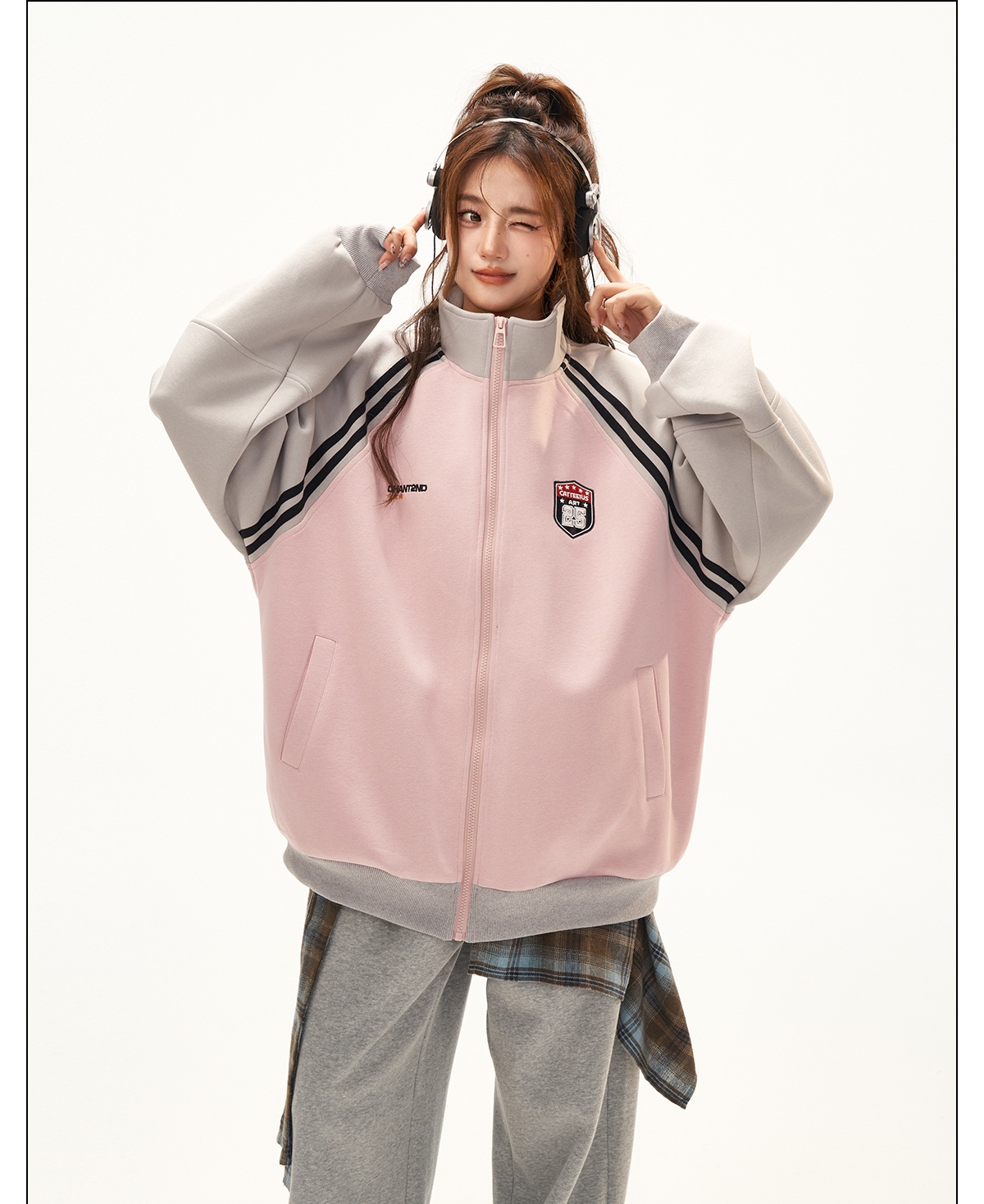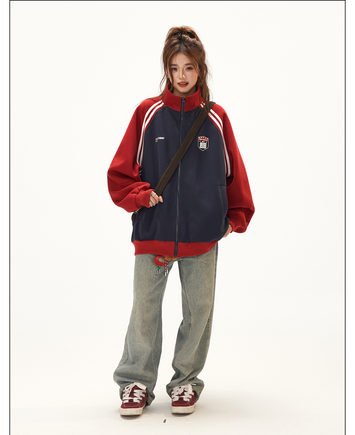 美式復古衛衣外套女秋冬季高級感拼接插肩袖衛衣開衫