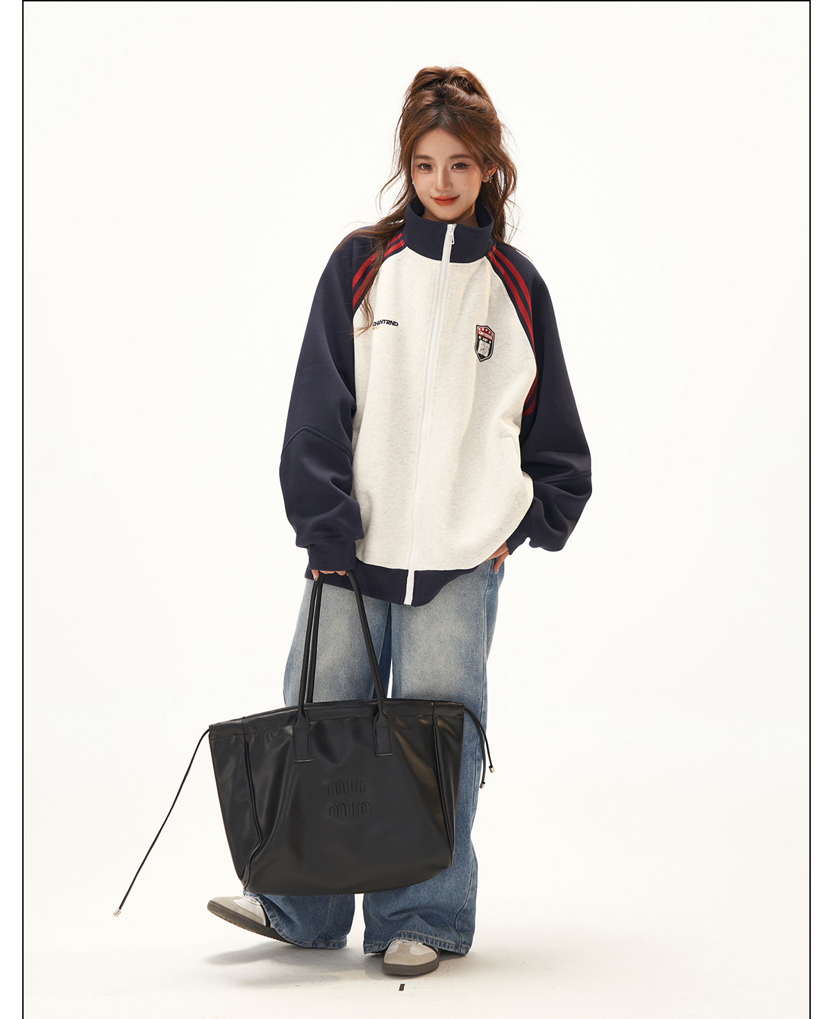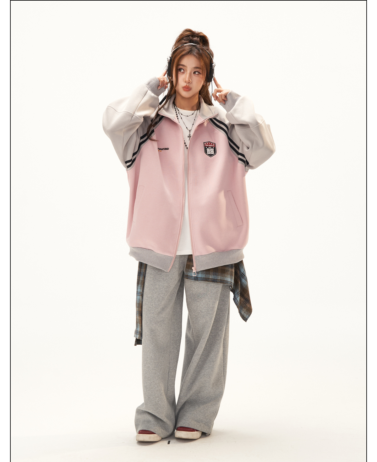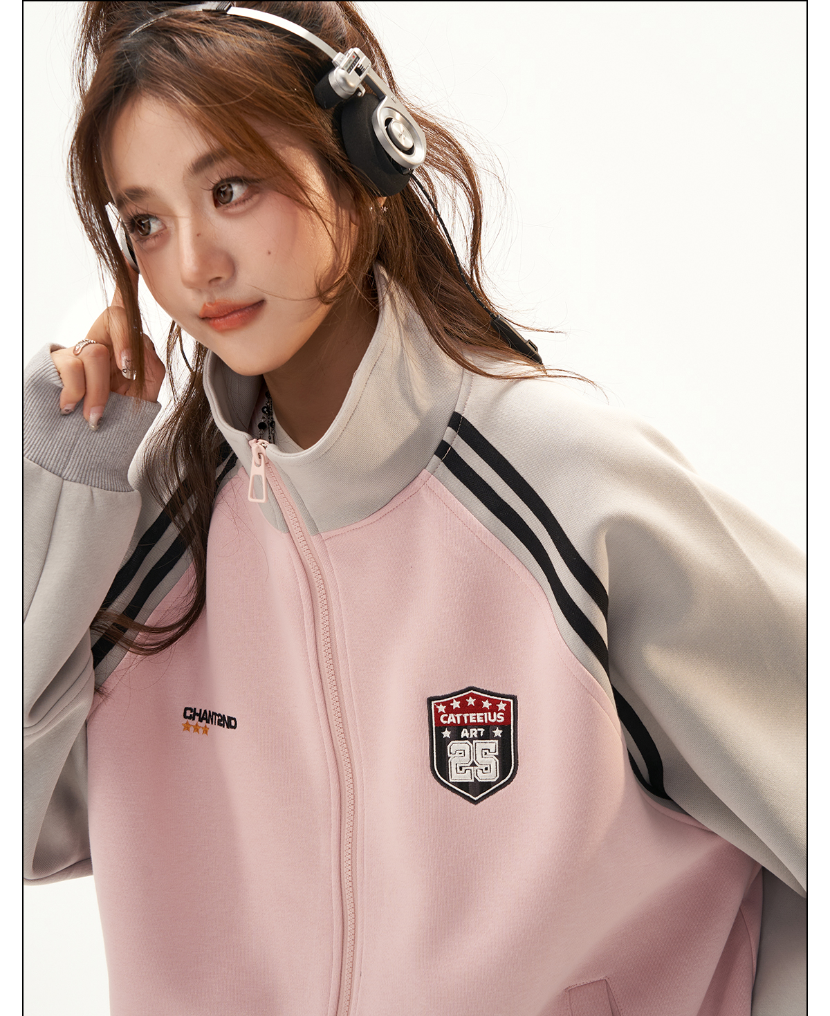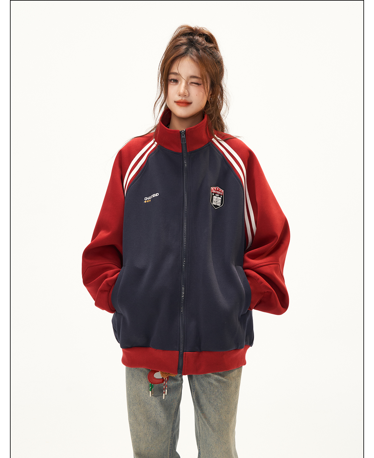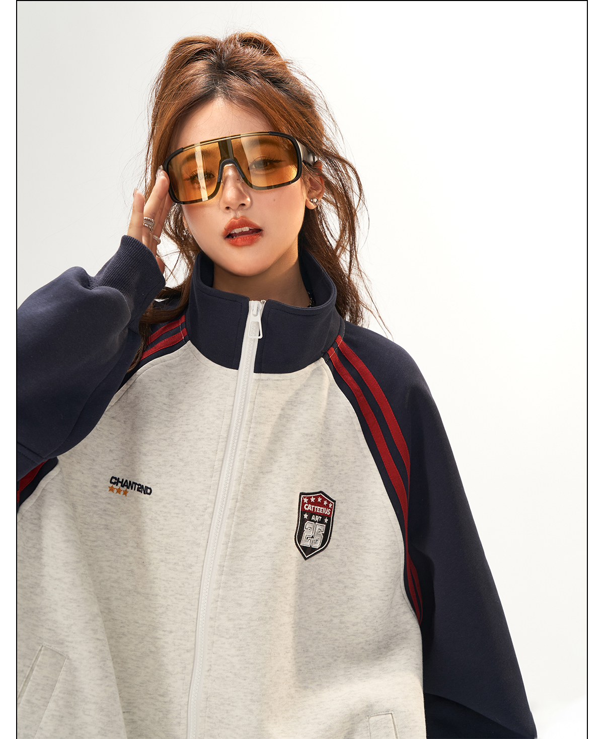 美式復古衛衣外套女秋冬季高級感拼接插肩袖衛衣開衫