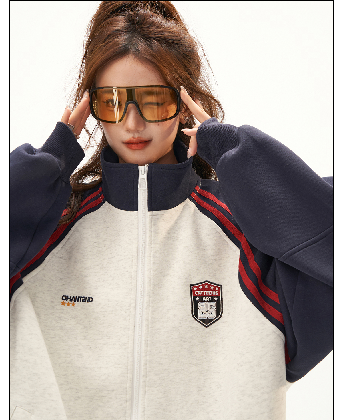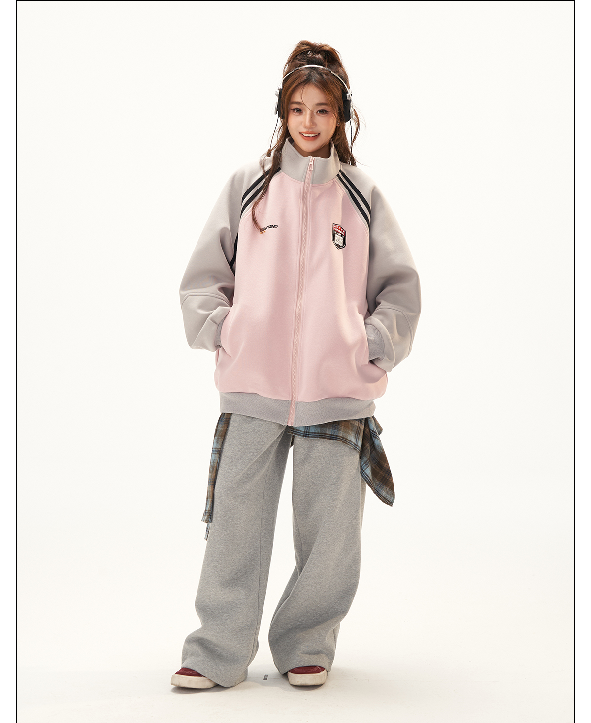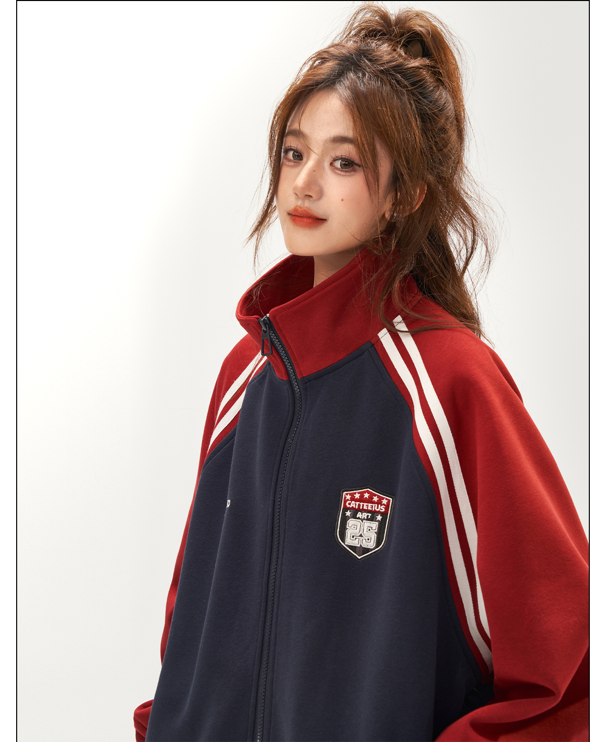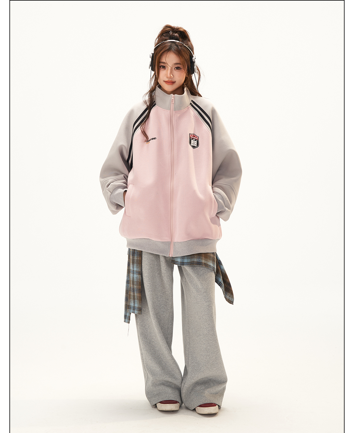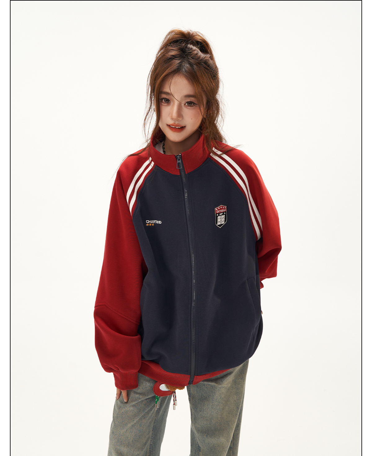 美式復古衛衣外套女秋冬季高級感拼接插肩袖衛衣開衫