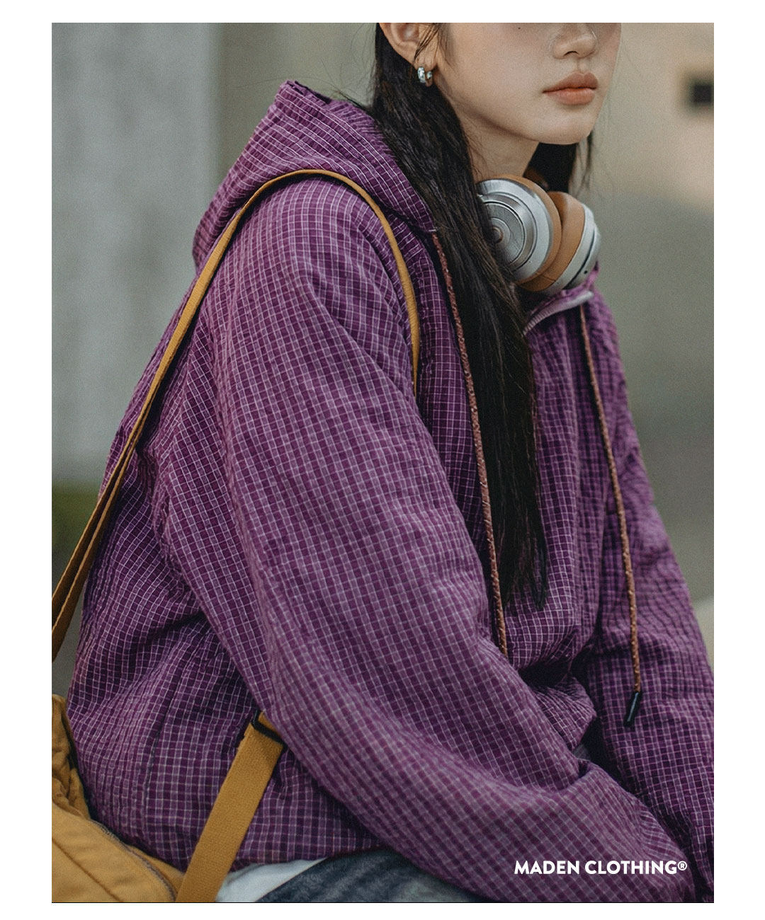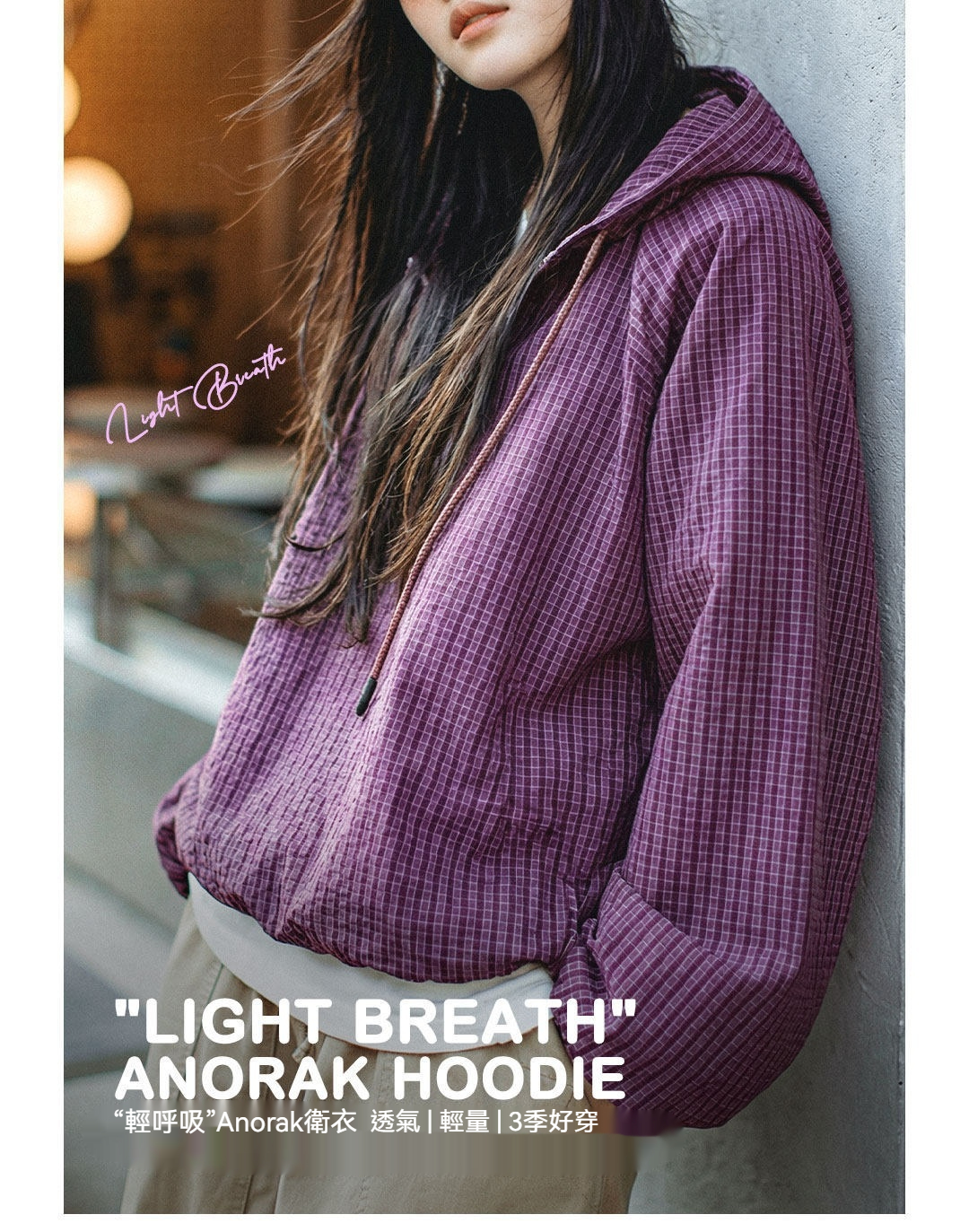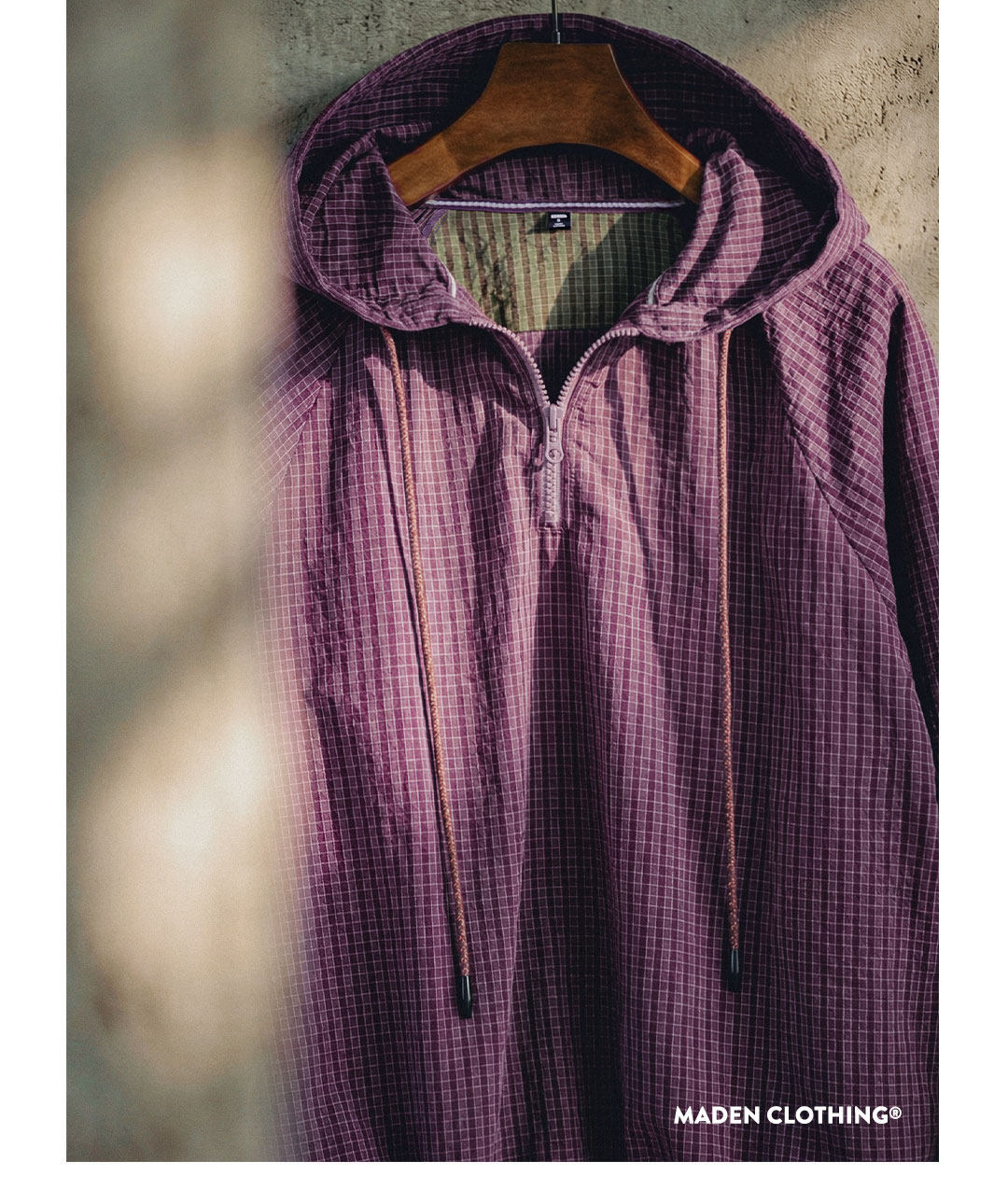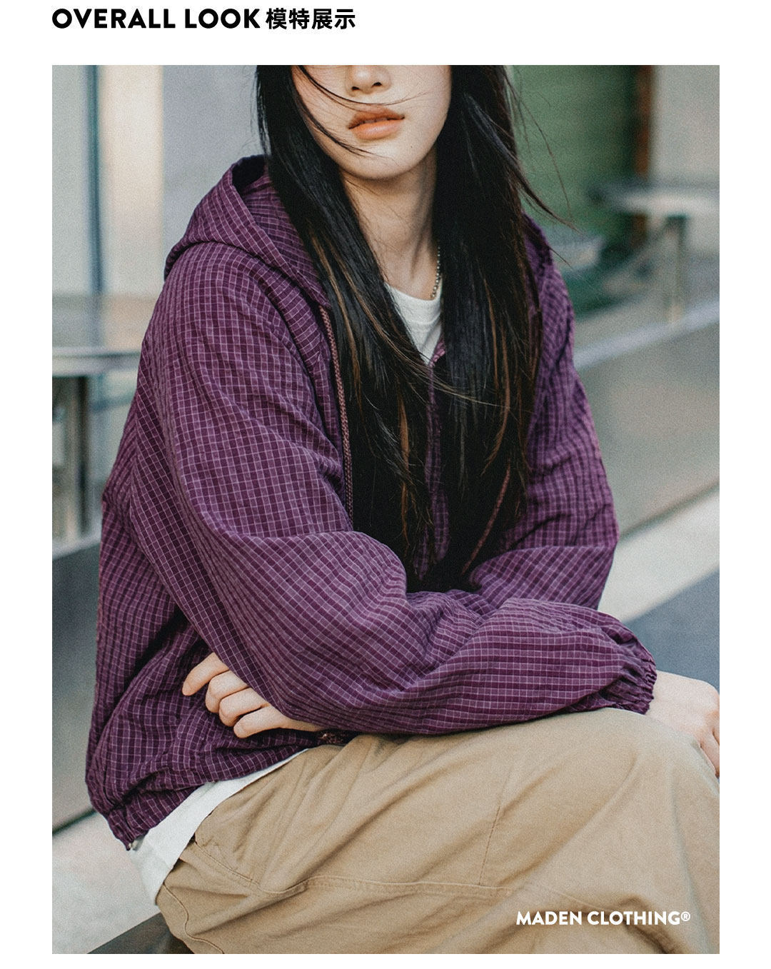 美式泡泡紗連帶帽半開襟工裝衛衣套頭衫寬鬆機能風上衣女士春
