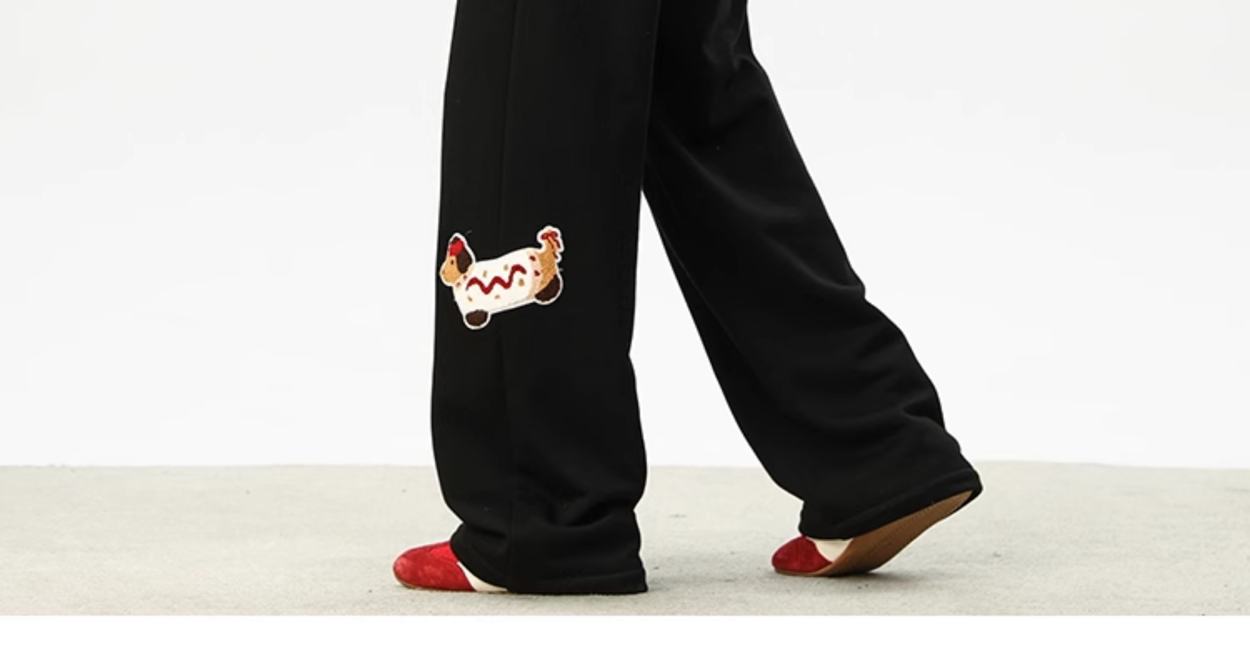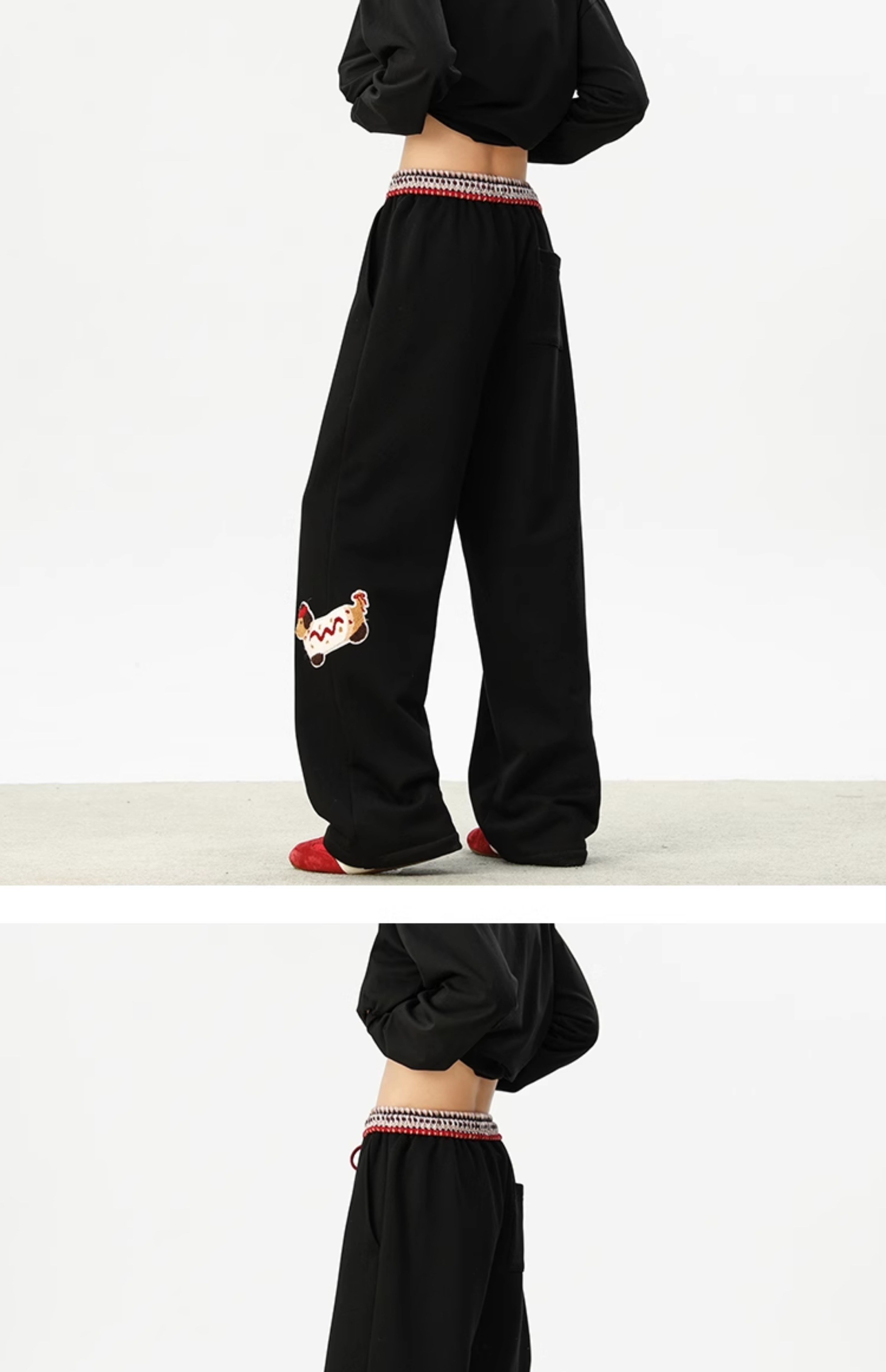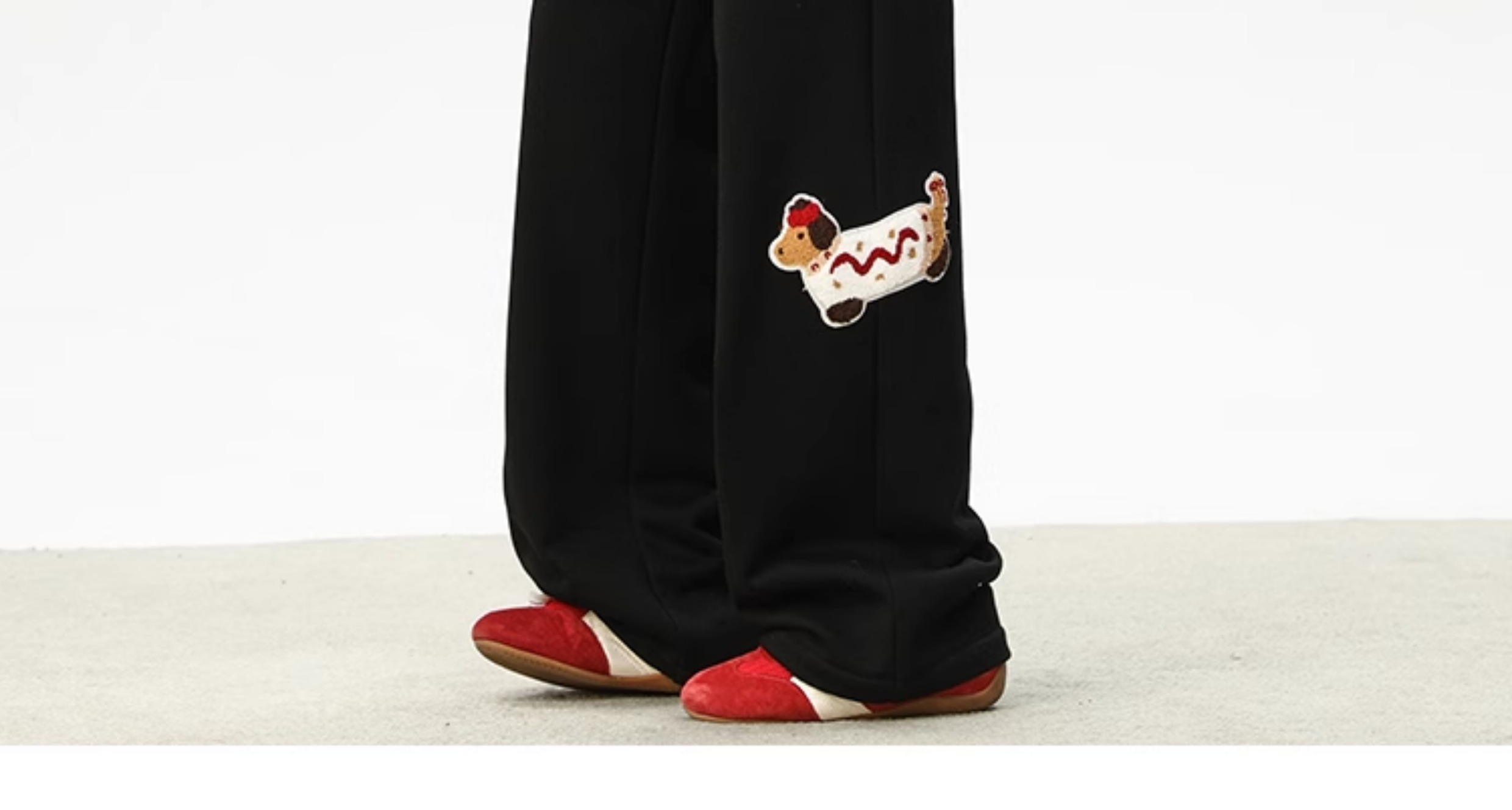 重磅臘腸狗衛褲女秋季新款小眾腰頭拼接設計感寬鬆闊腿長褲