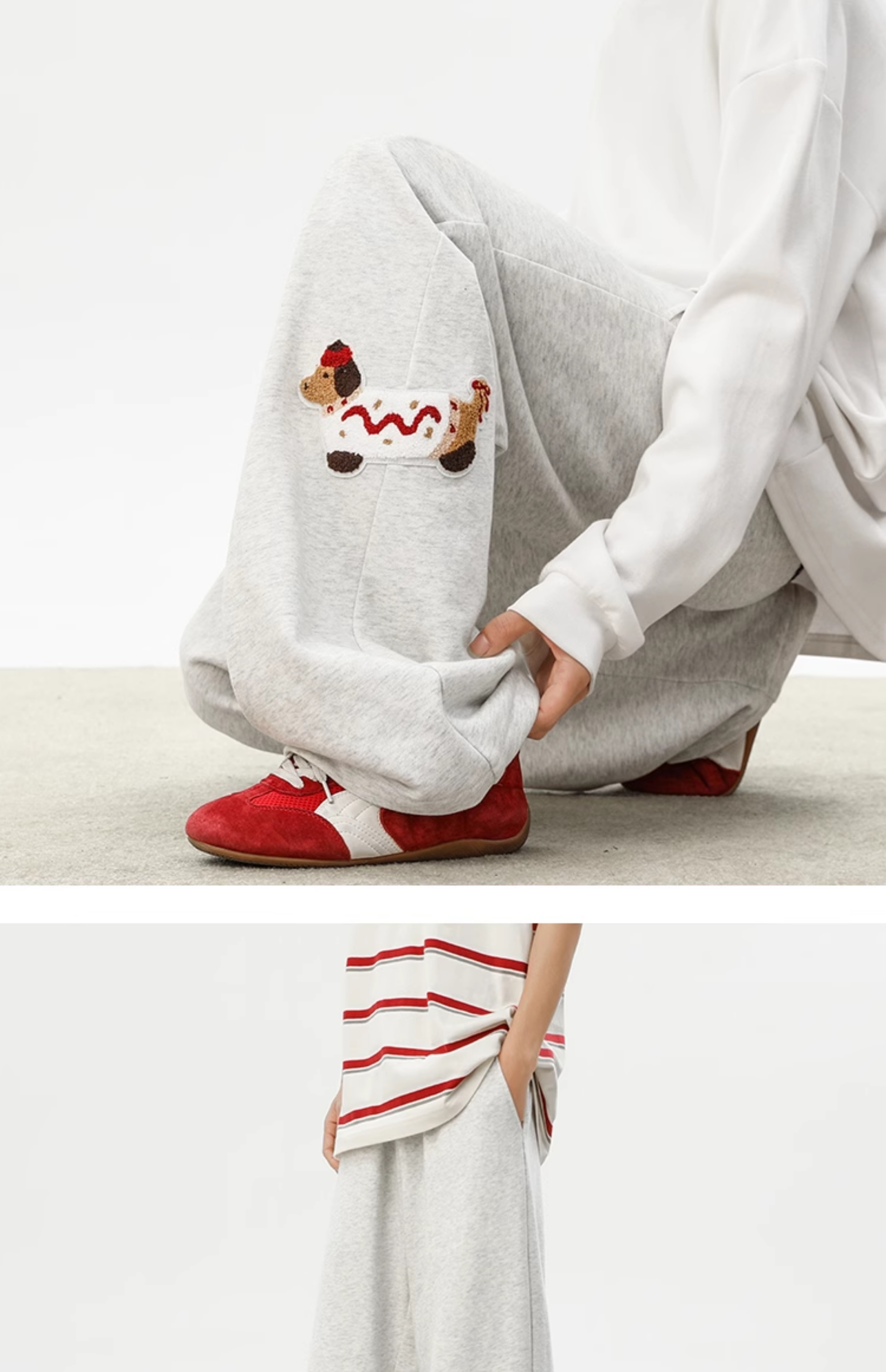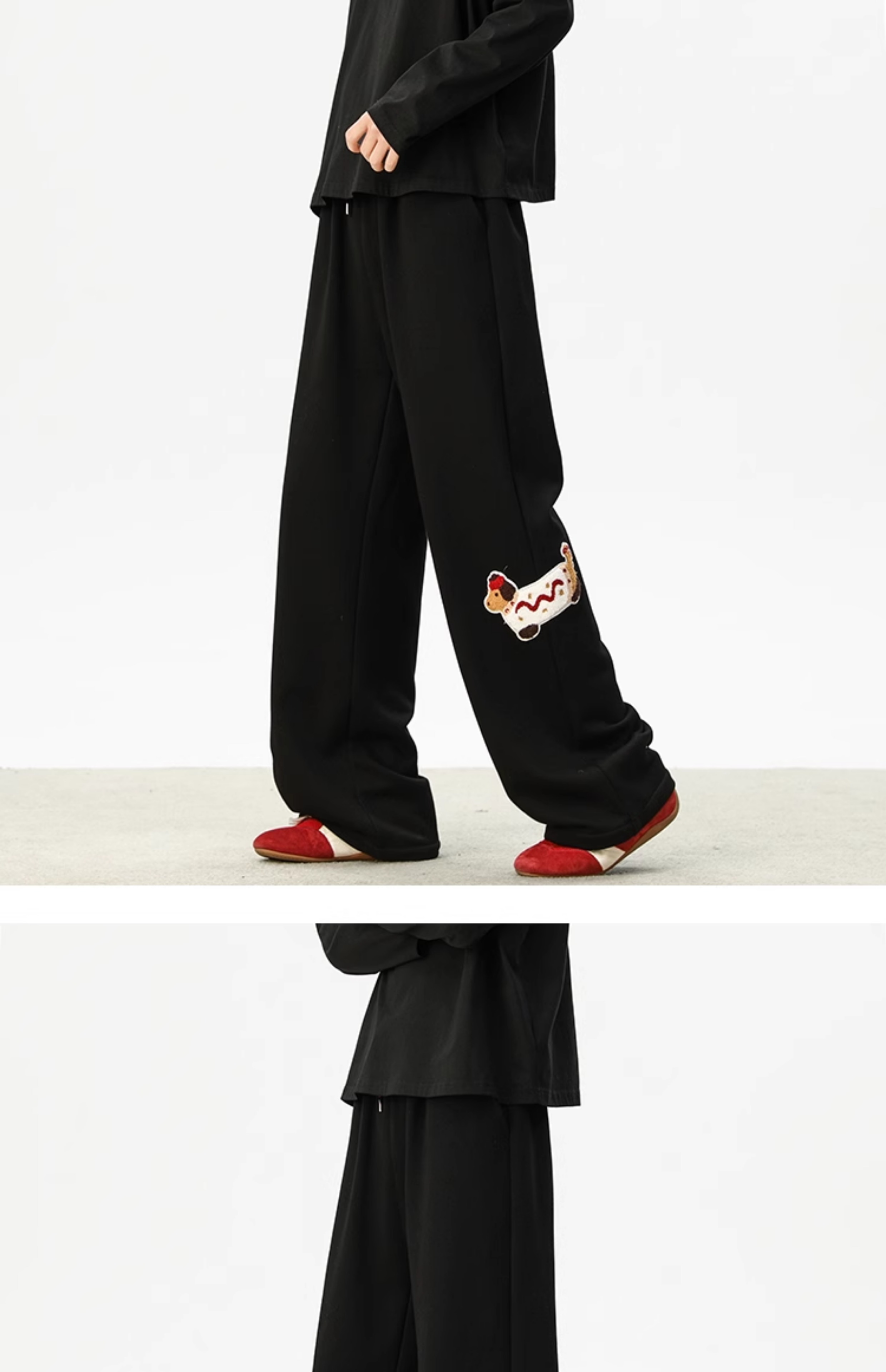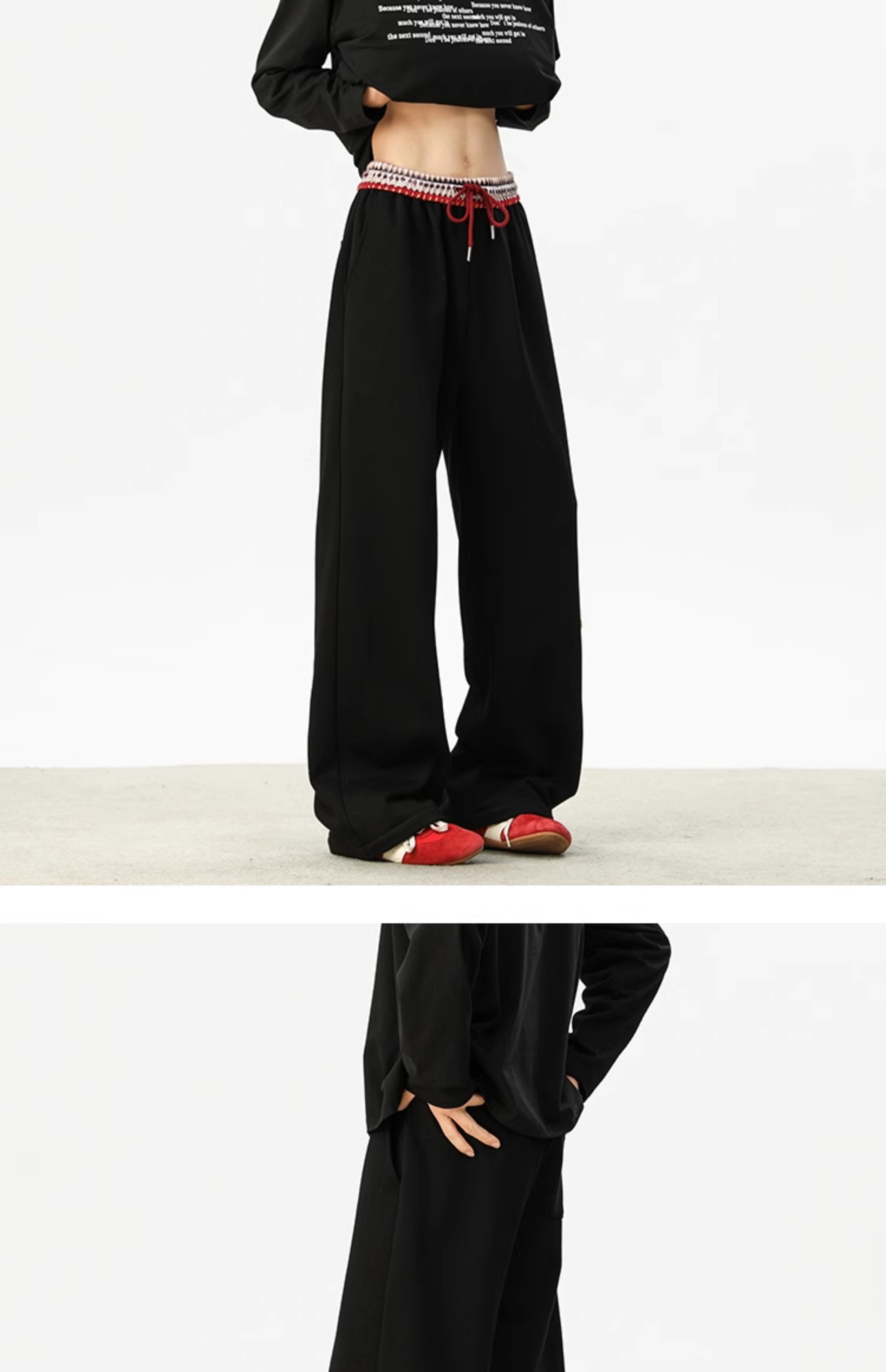 重磅臘腸狗衛褲女秋季新款小眾腰頭拼接設計感寬鬆闊腿長褲