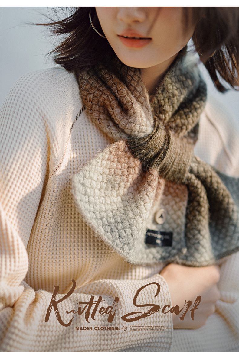 漸變保暖針織彩色圍脖復古軟糯彩色高級感加厚保暖圍巾冬季女