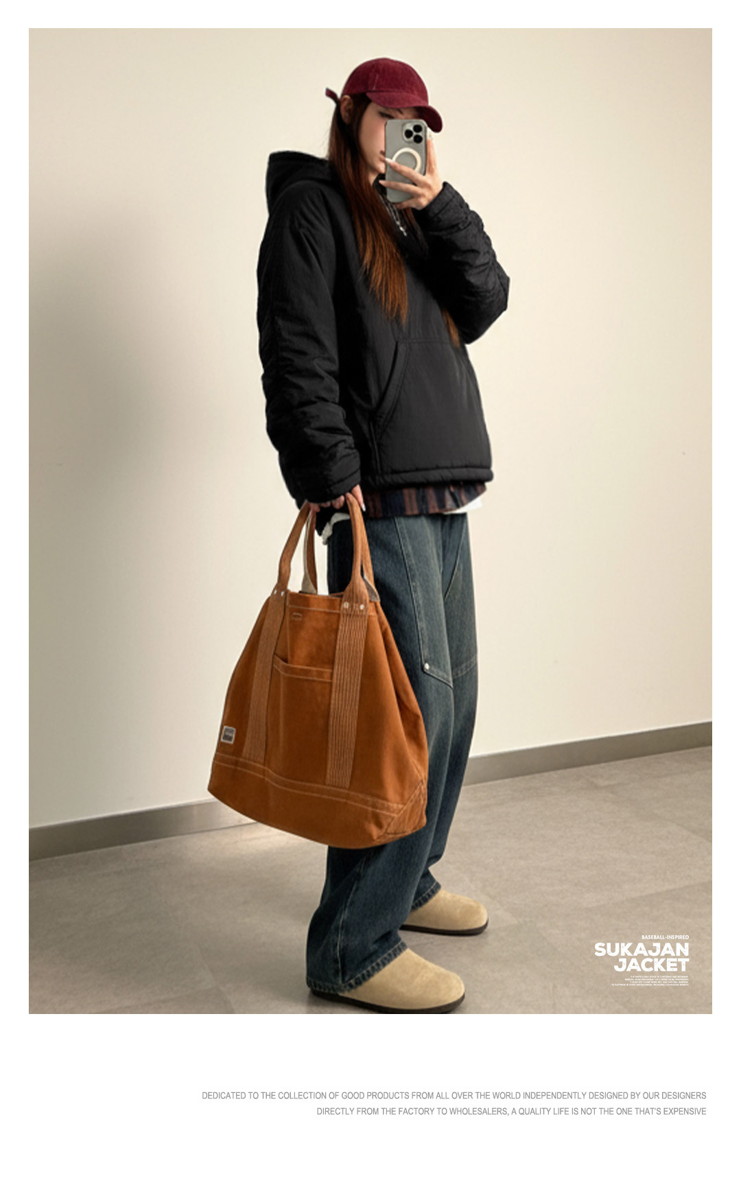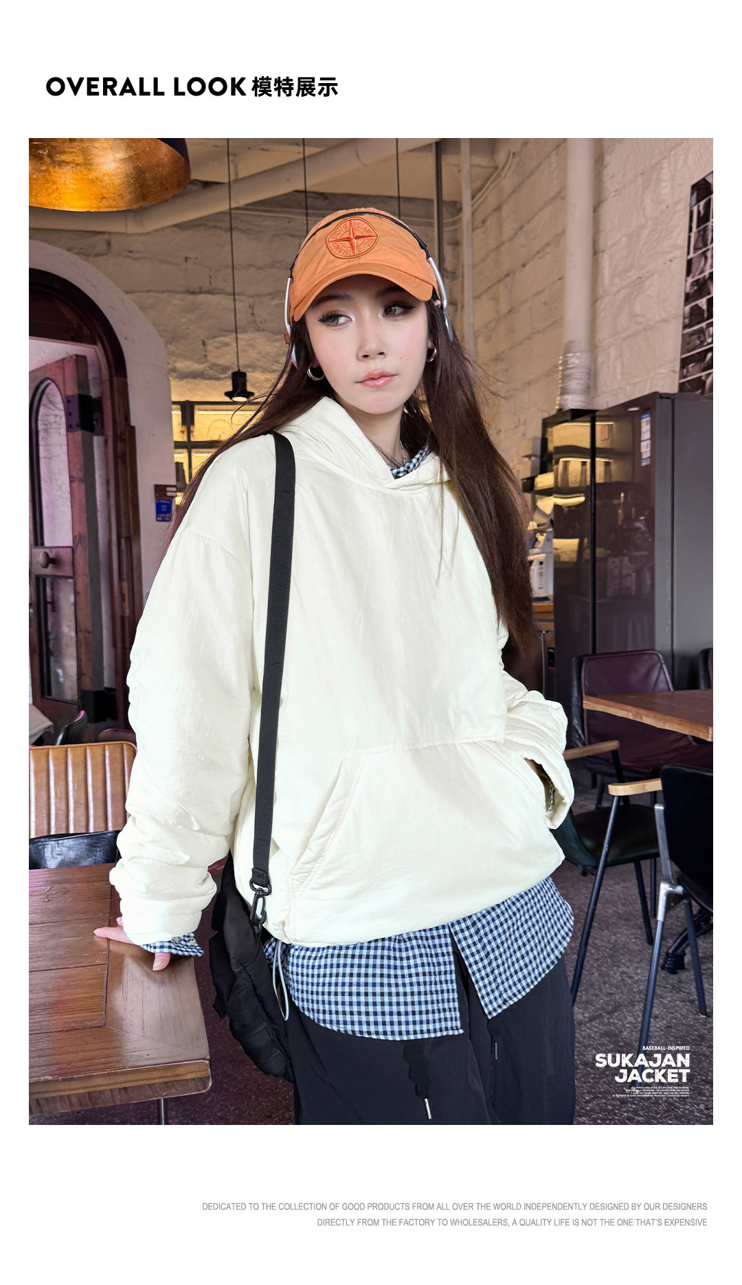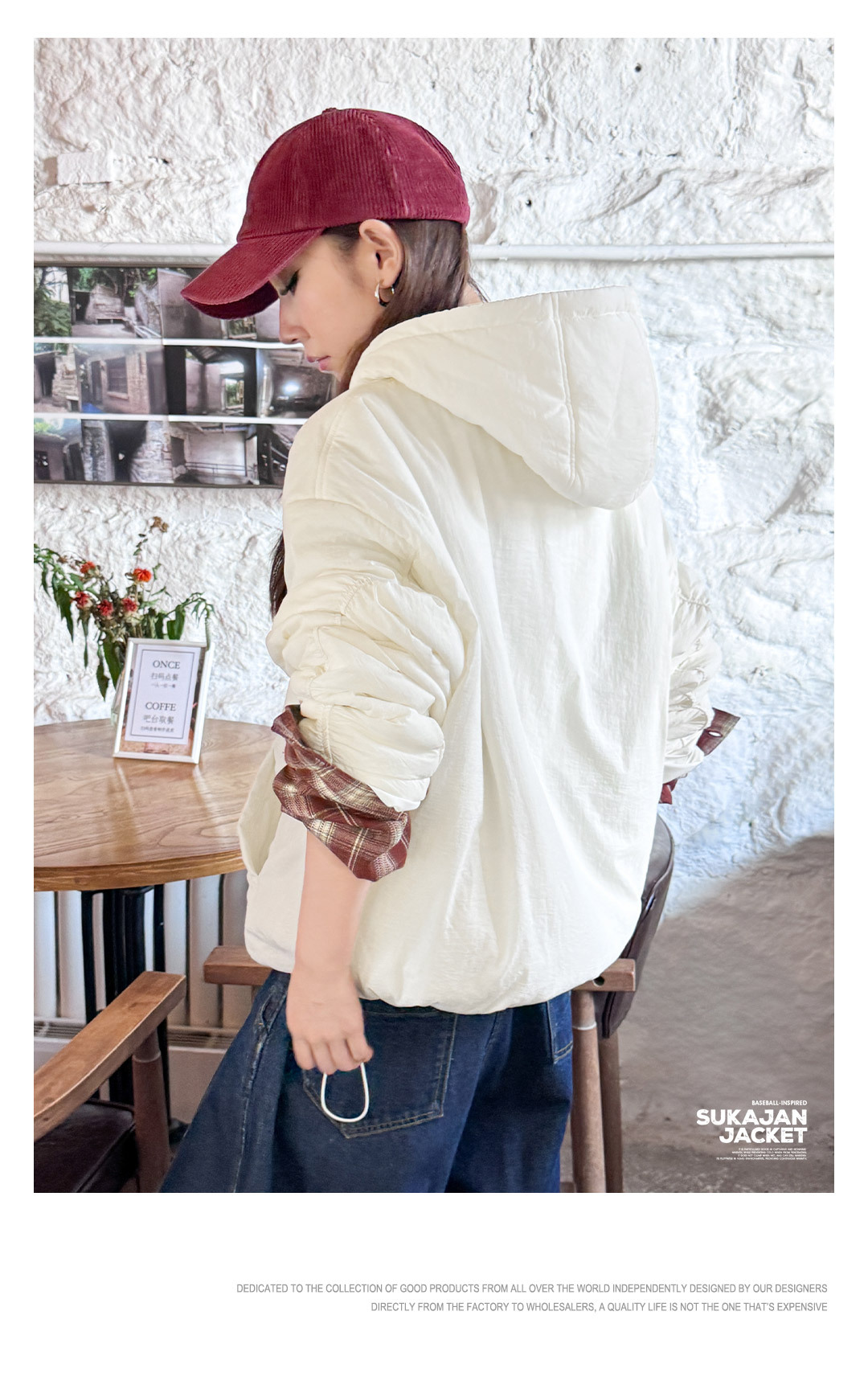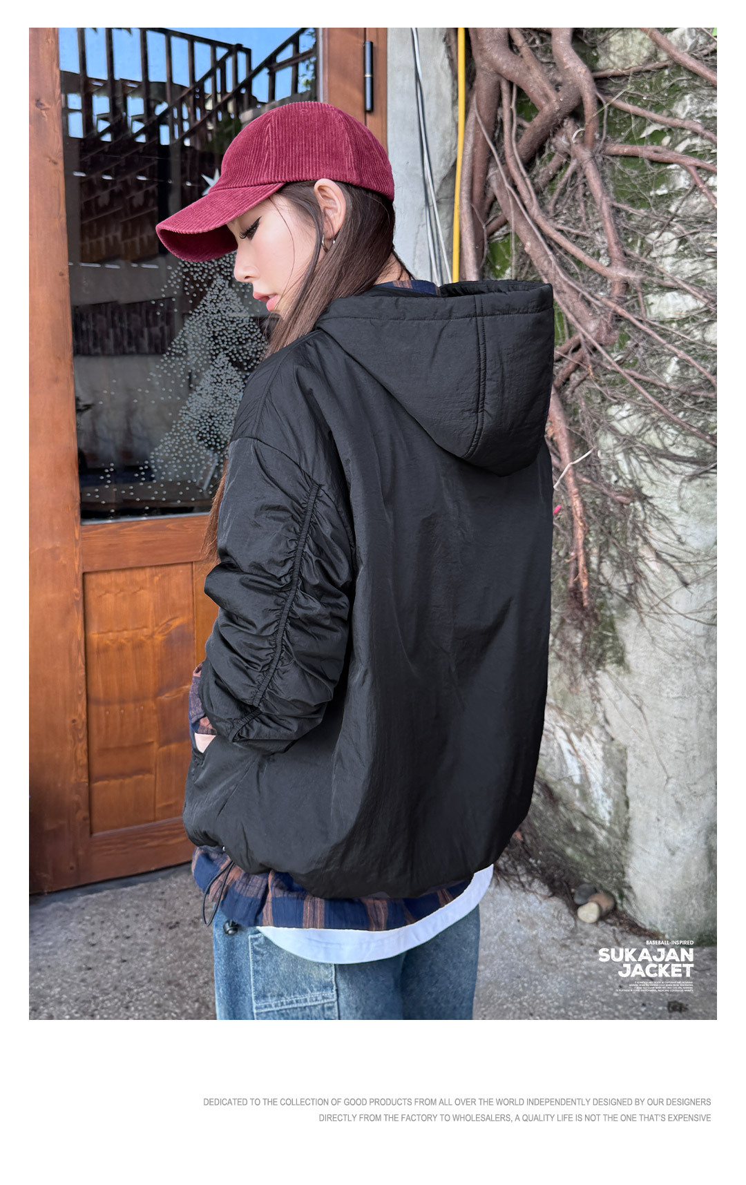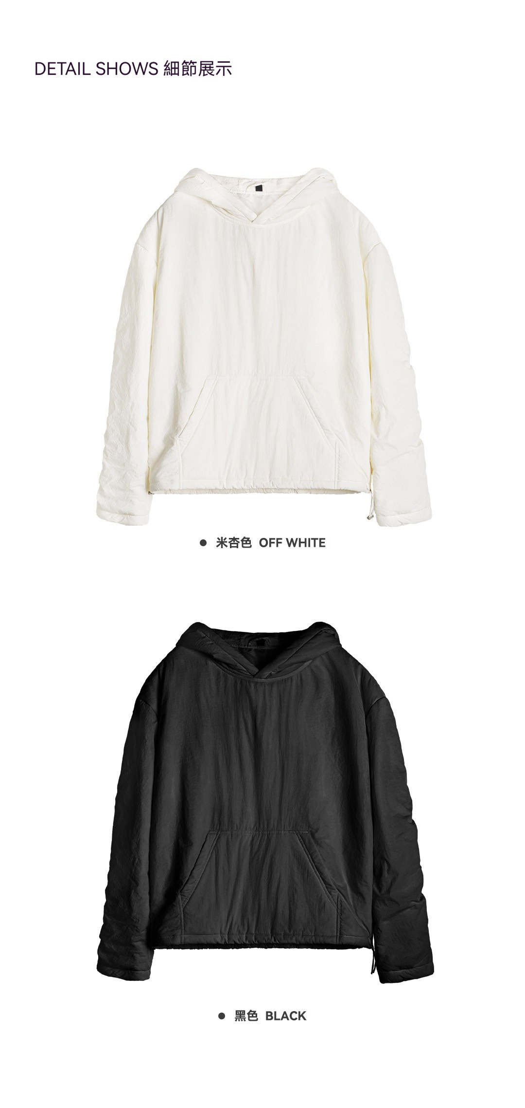 黑白色寬鬆廓形加厚保暖套頭氣絨棉服連帽衛衣夾克外套女士冬